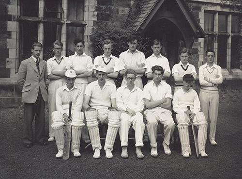 A House Cricket XI of 1947 or possibly 1948 pictured on the Pavilion steps
