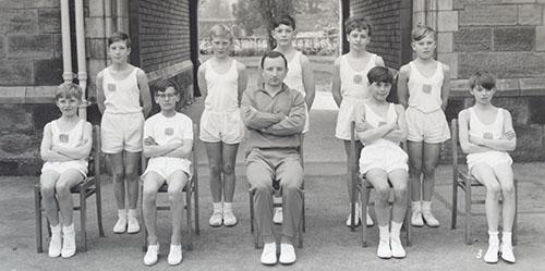 Front row: John Wilsdon, Fred Yates, [unknown], Brian Reed, Mr Sanderson, John Hayles, [unknown], Paul Thirkell, Sam Backhouse