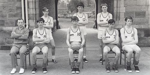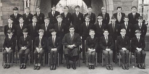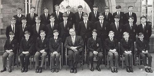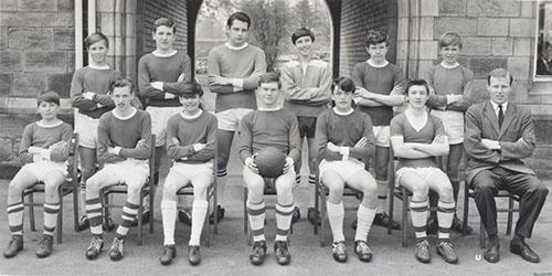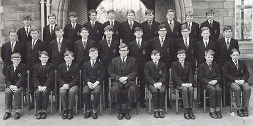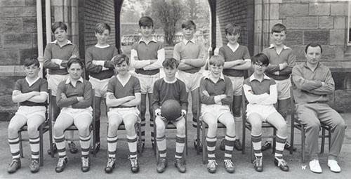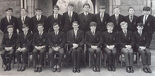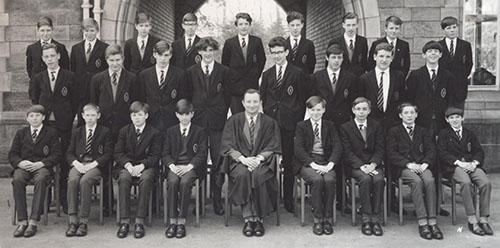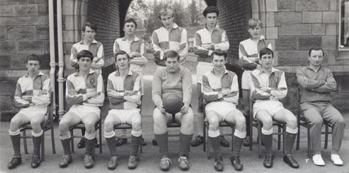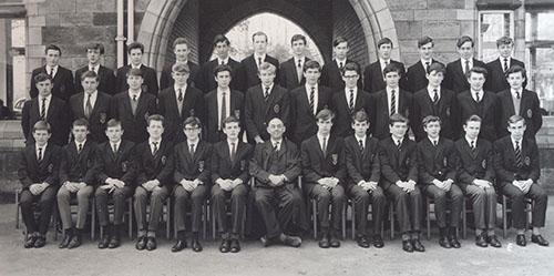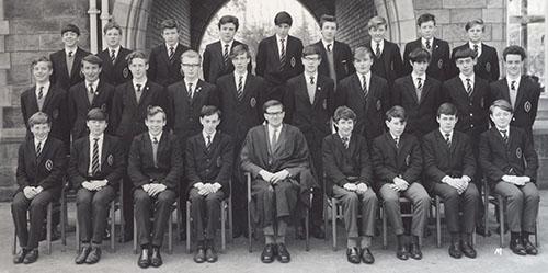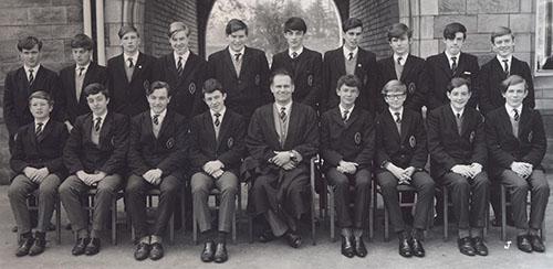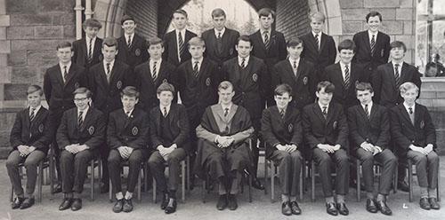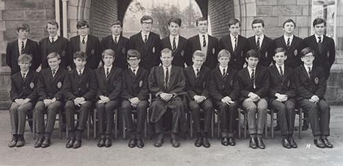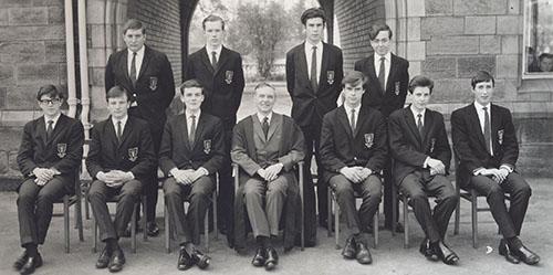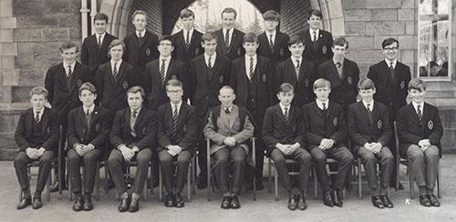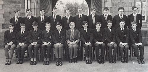 Front row: Robert Tait, David Rudsdale, Alan Parker, Graham Howard, Hodgson, Mr Morgan, Andrew Loudon, Graham Nellist, Robin Wright, Frank, Arthur Evans