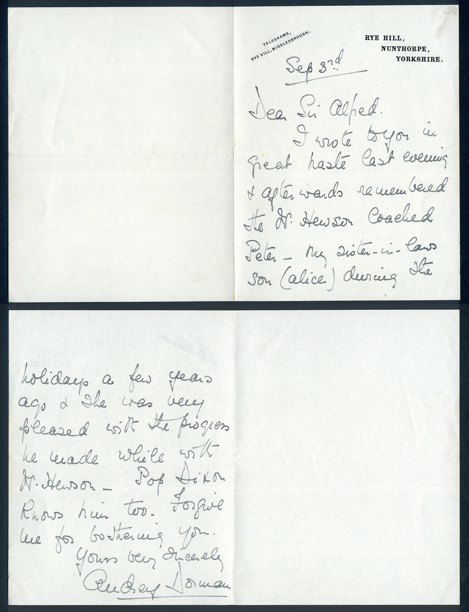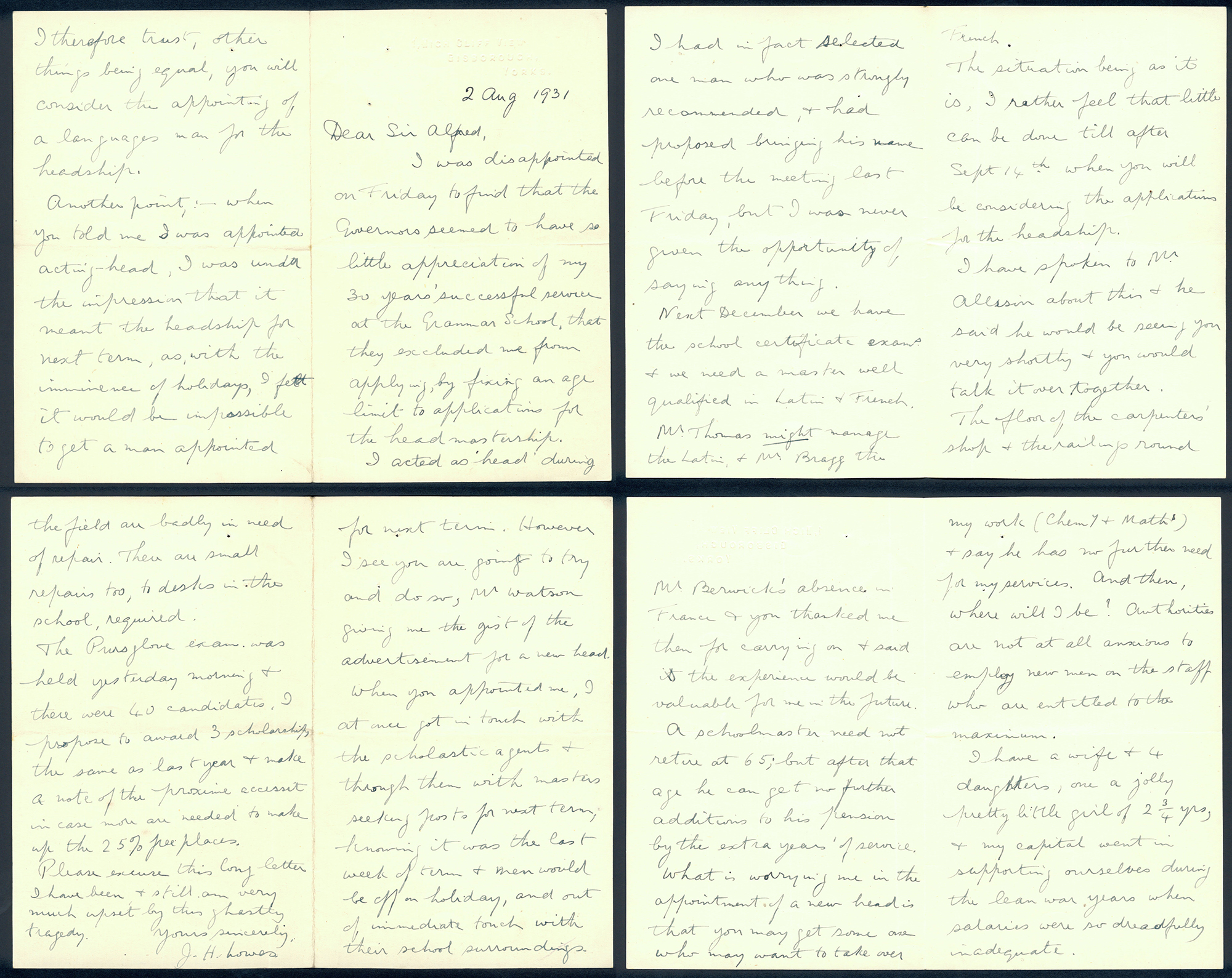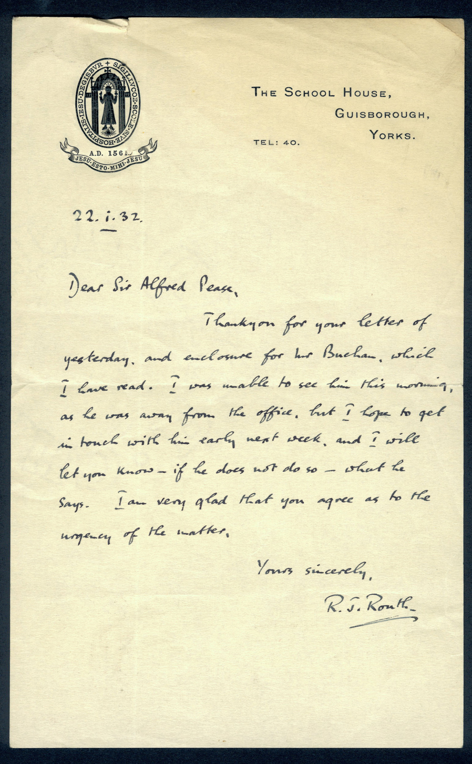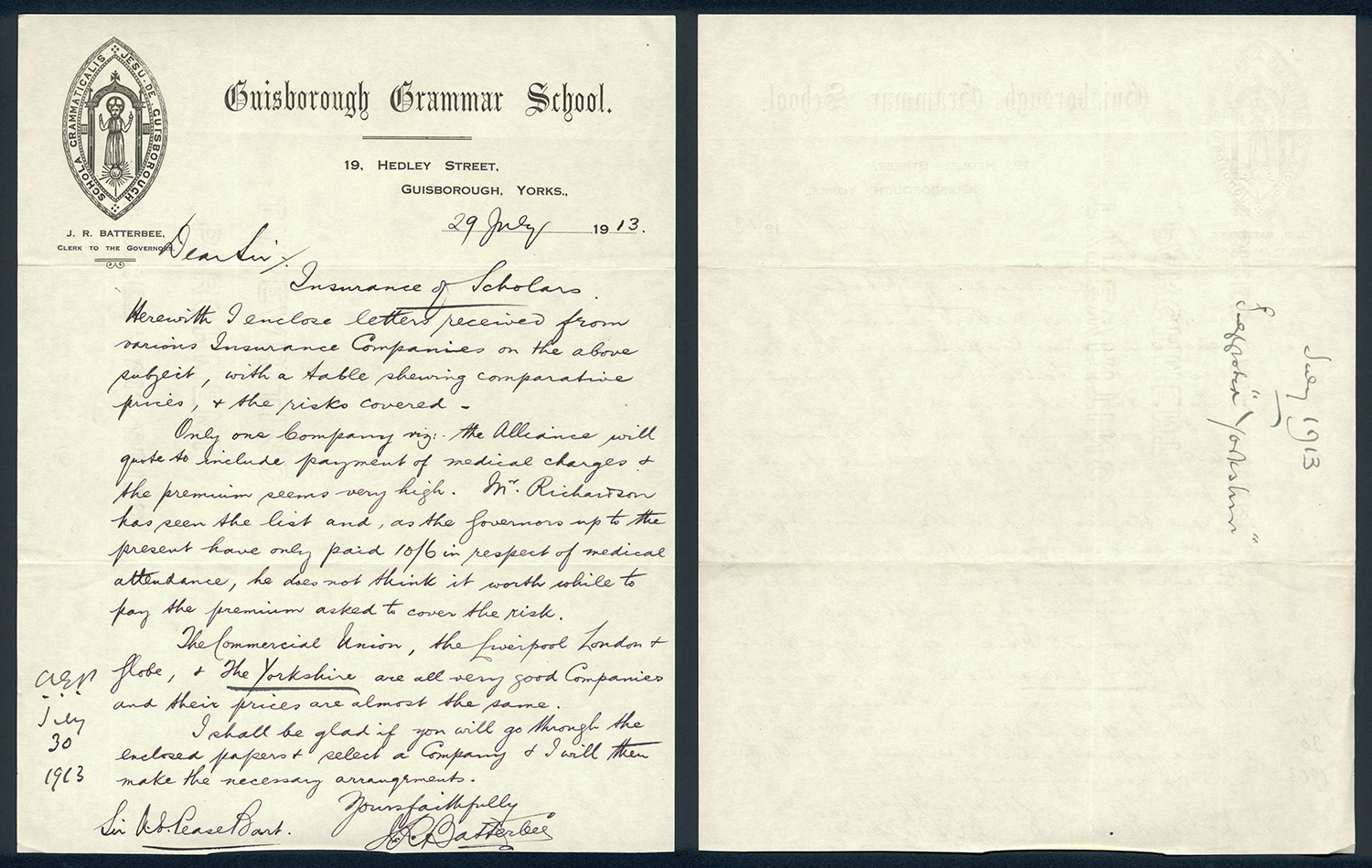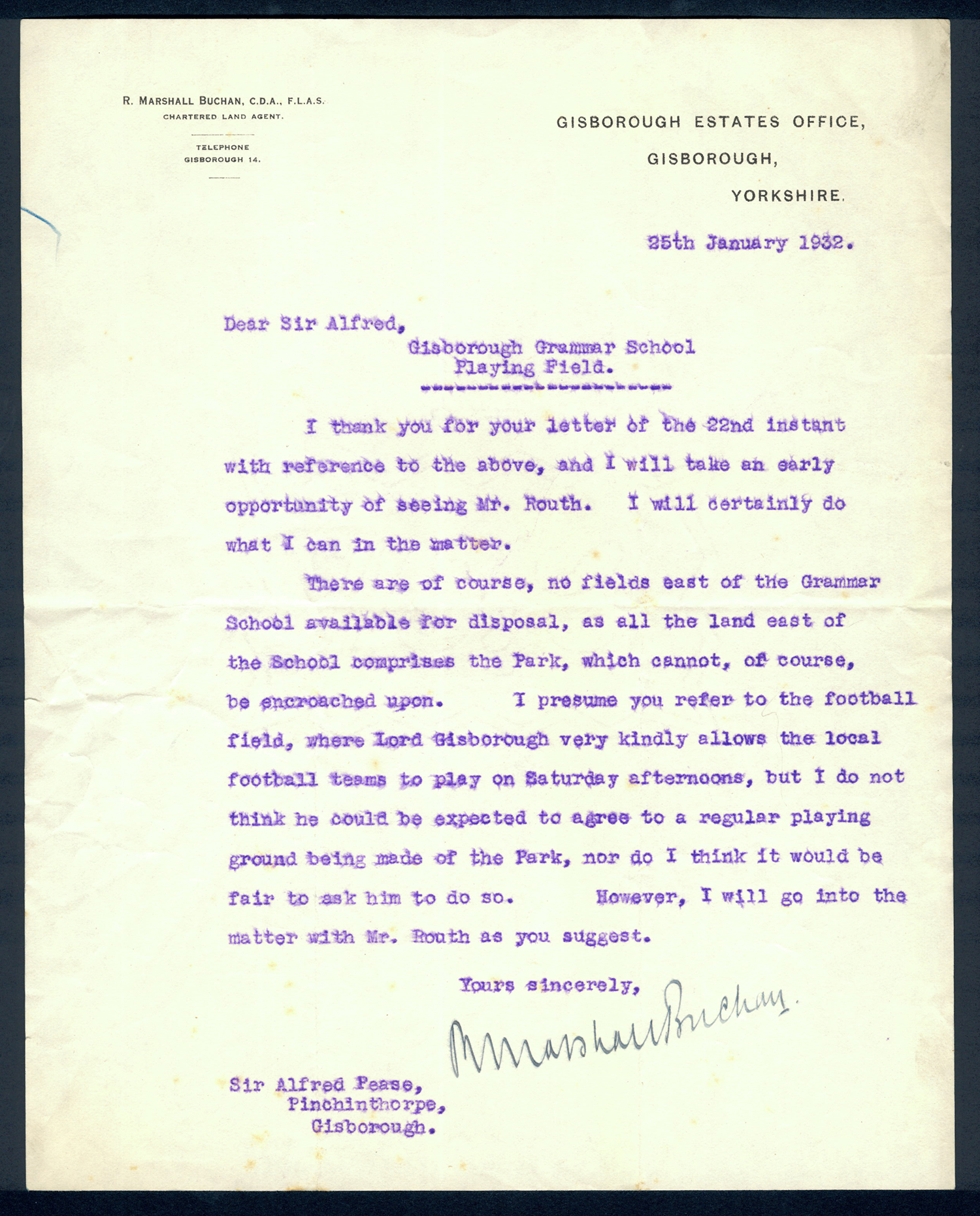 This section holds our collection of letters of Sir Alfred Pease, some of which were written by Headmasters of Guisborough Grammar School.