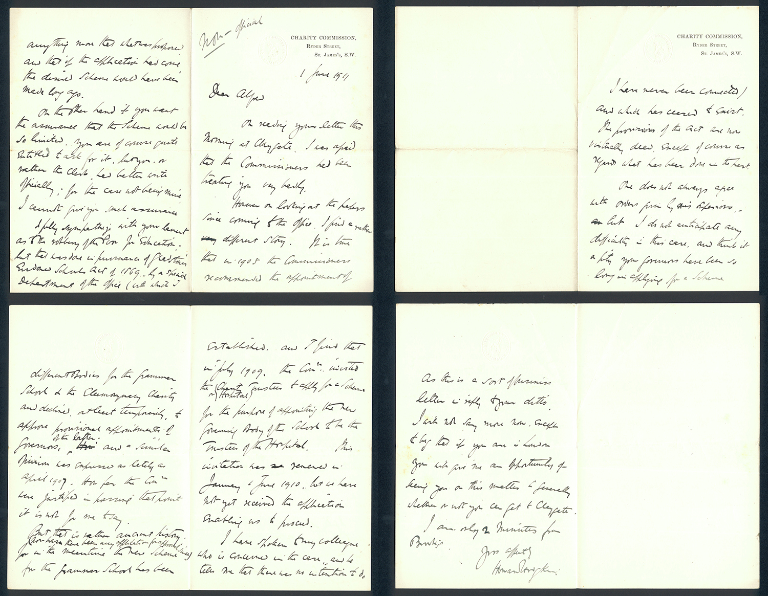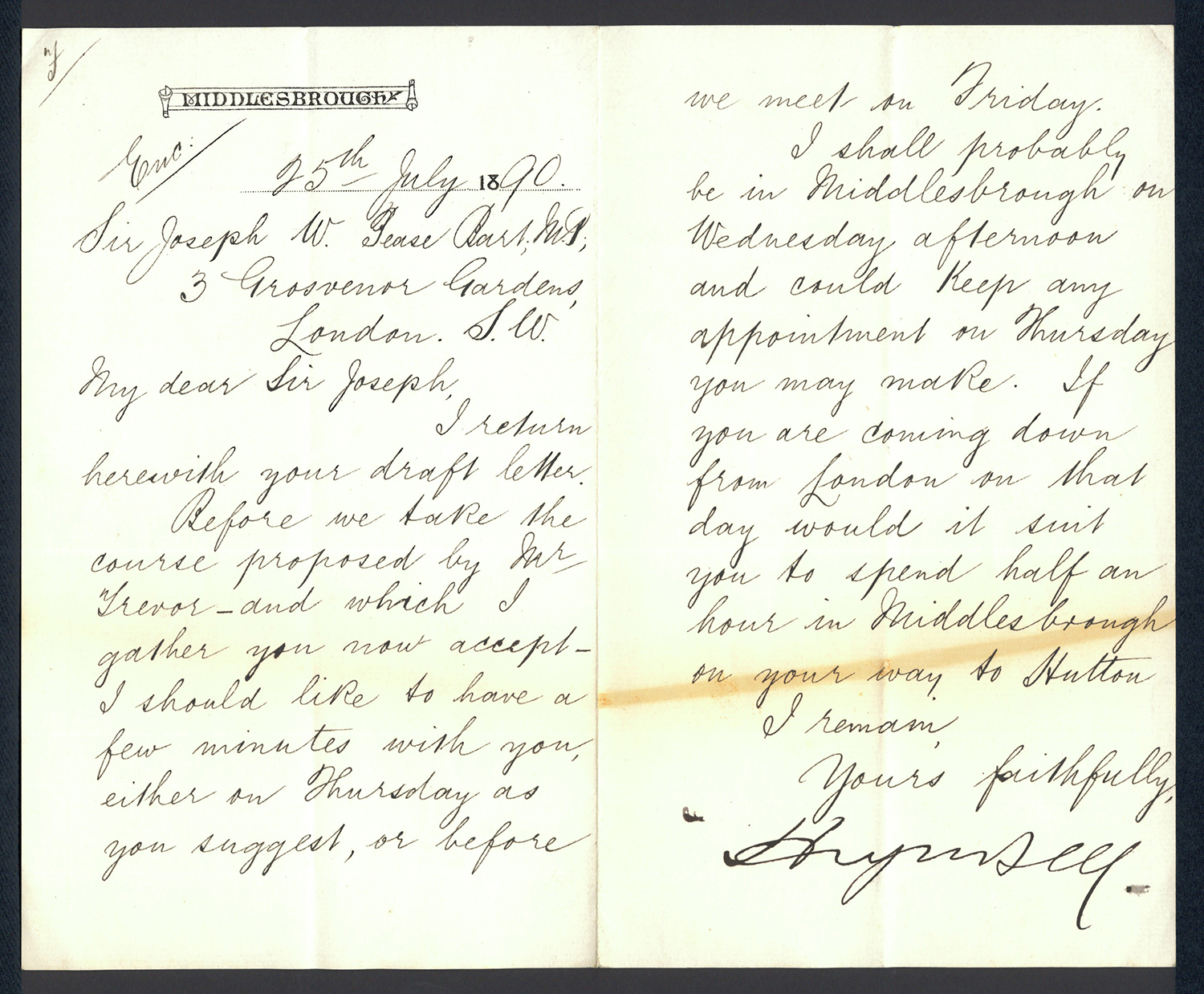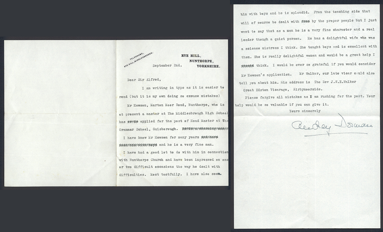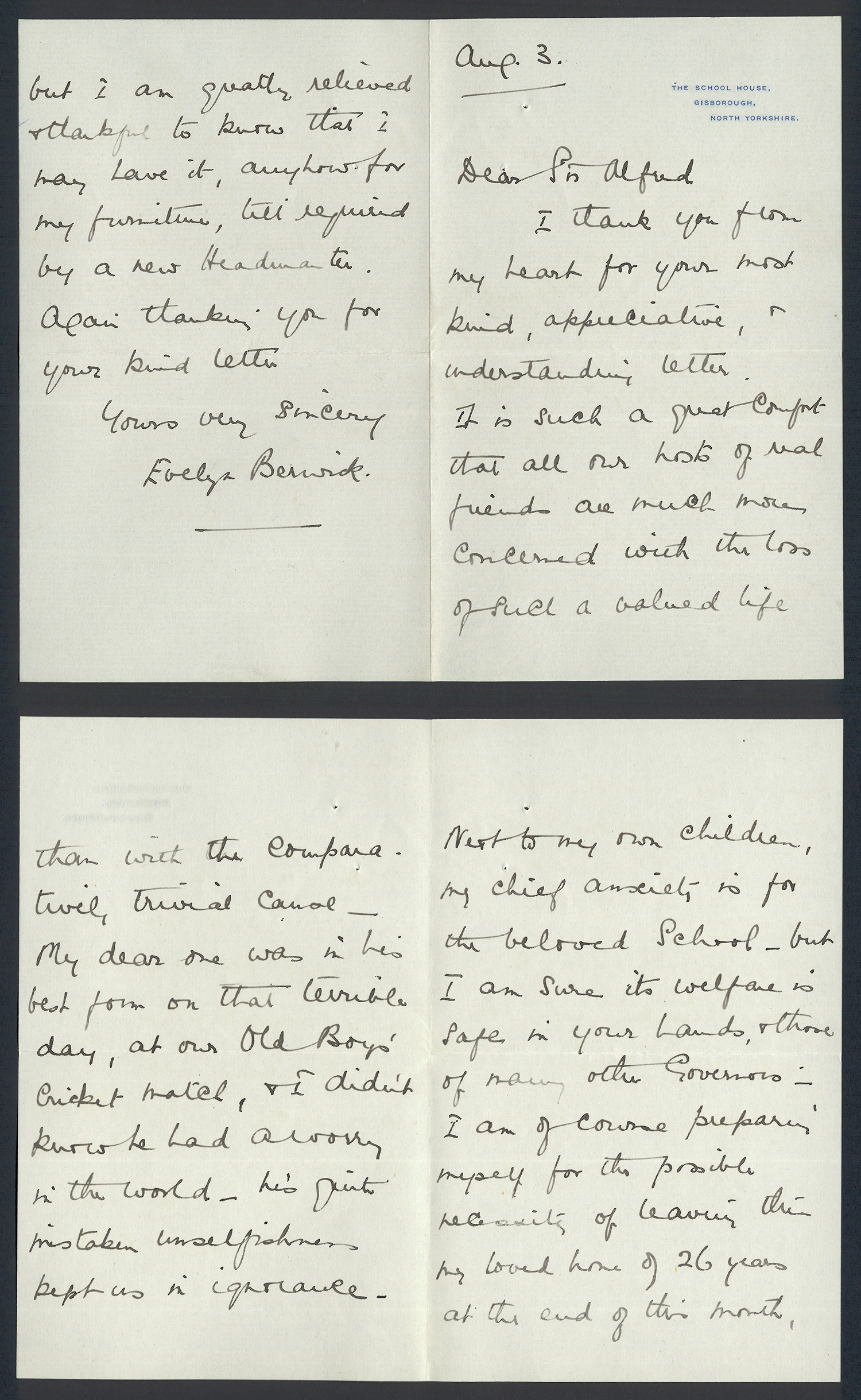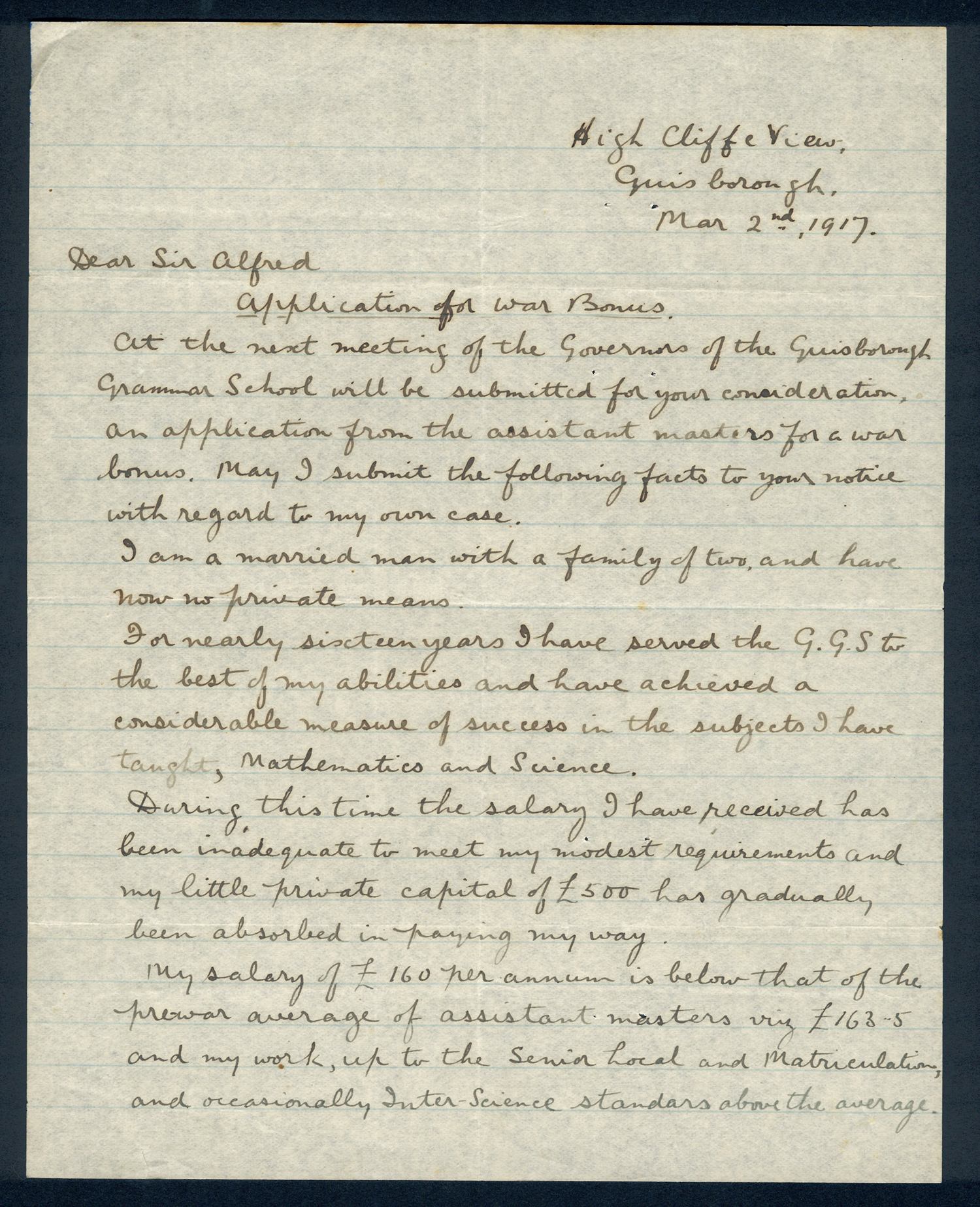 This section holds our collection of letters of Sir Alfred Pease, some of which were written by Headmasters of Guisborough Grammar School.