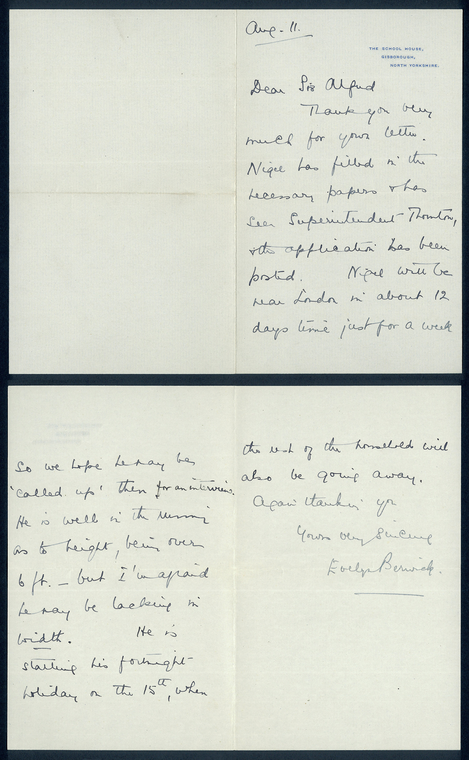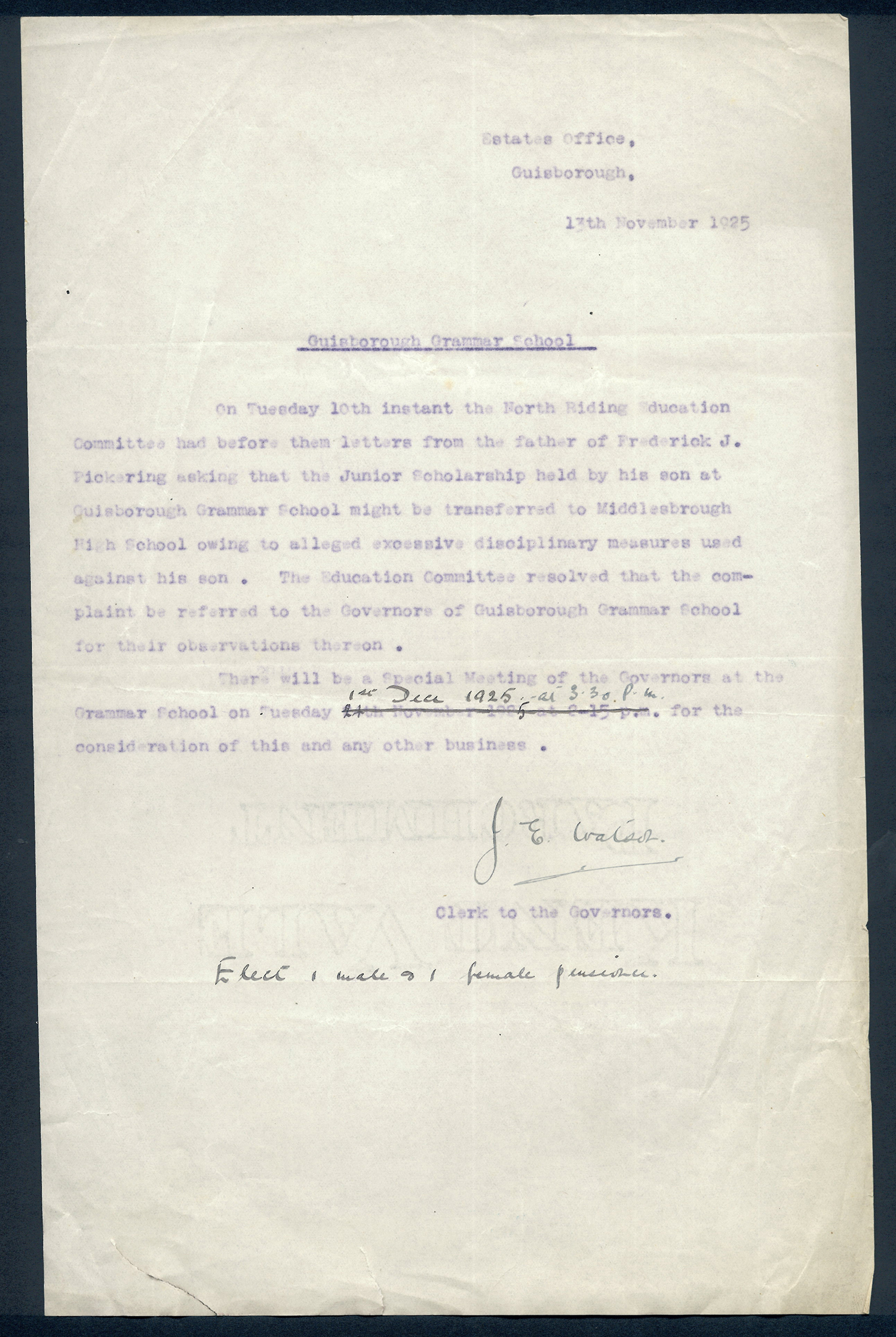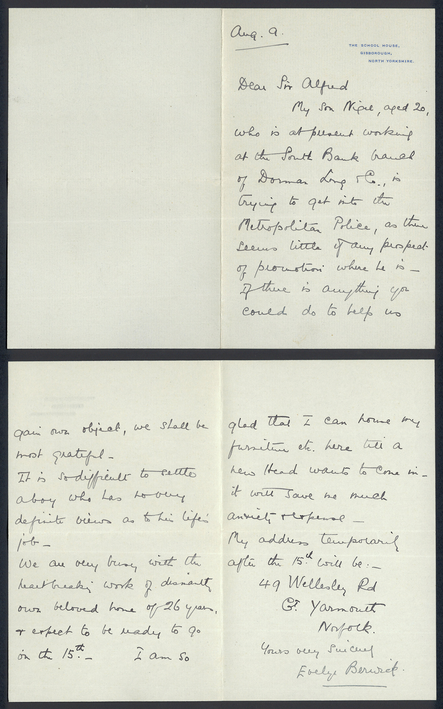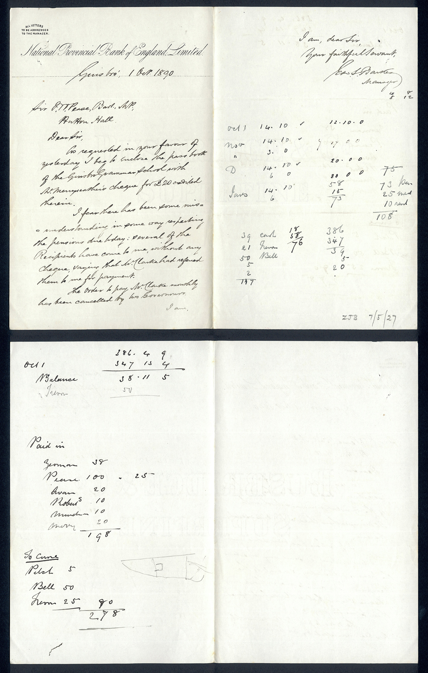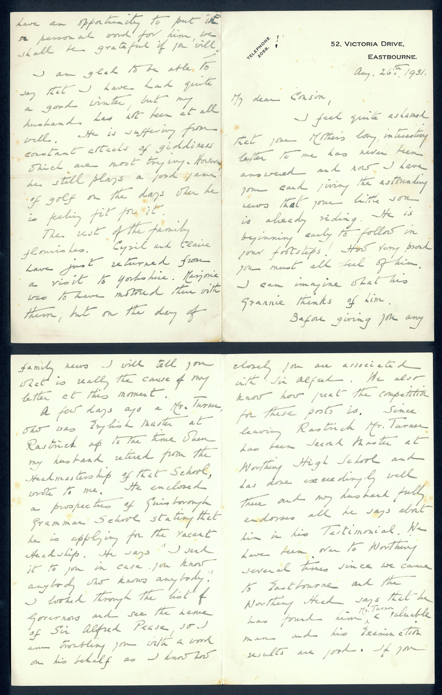 This section holds our collection of letters of Sir Alfred Pease, some of which were written by Headmasters of Guisborough Grammar School.