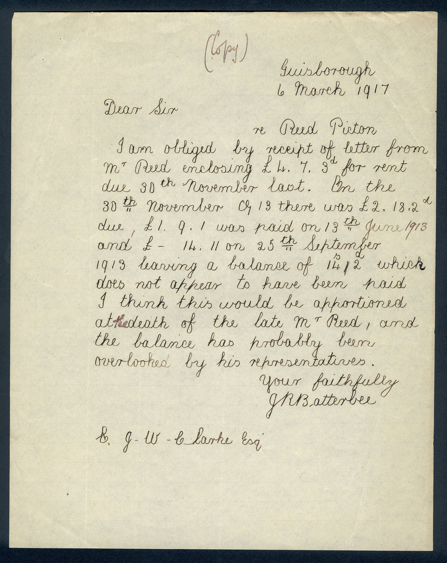 These letters represent incoming correspondence only. Some organisations kept letter books, in which they recorded copies of the letters they sent. The Wardens of Guisborough Hospital do not appear to have done this.