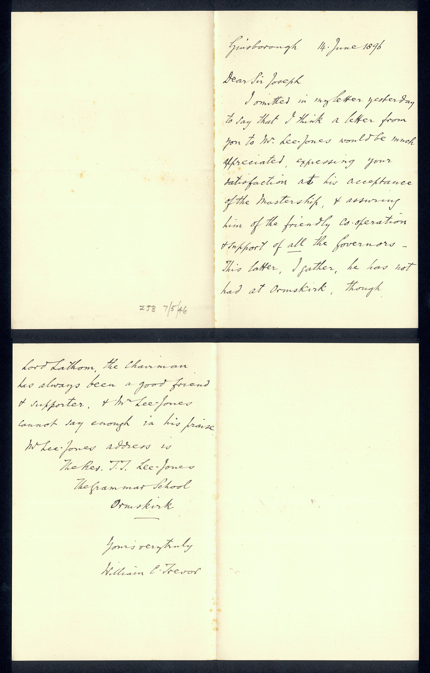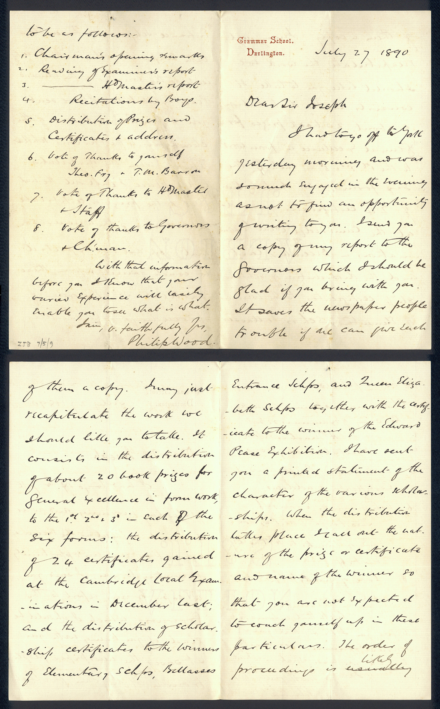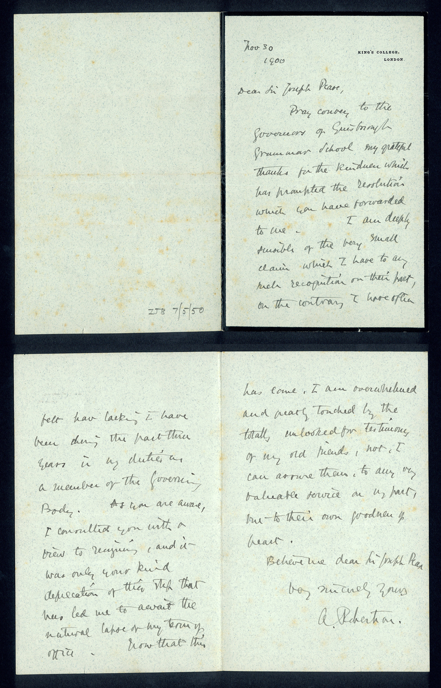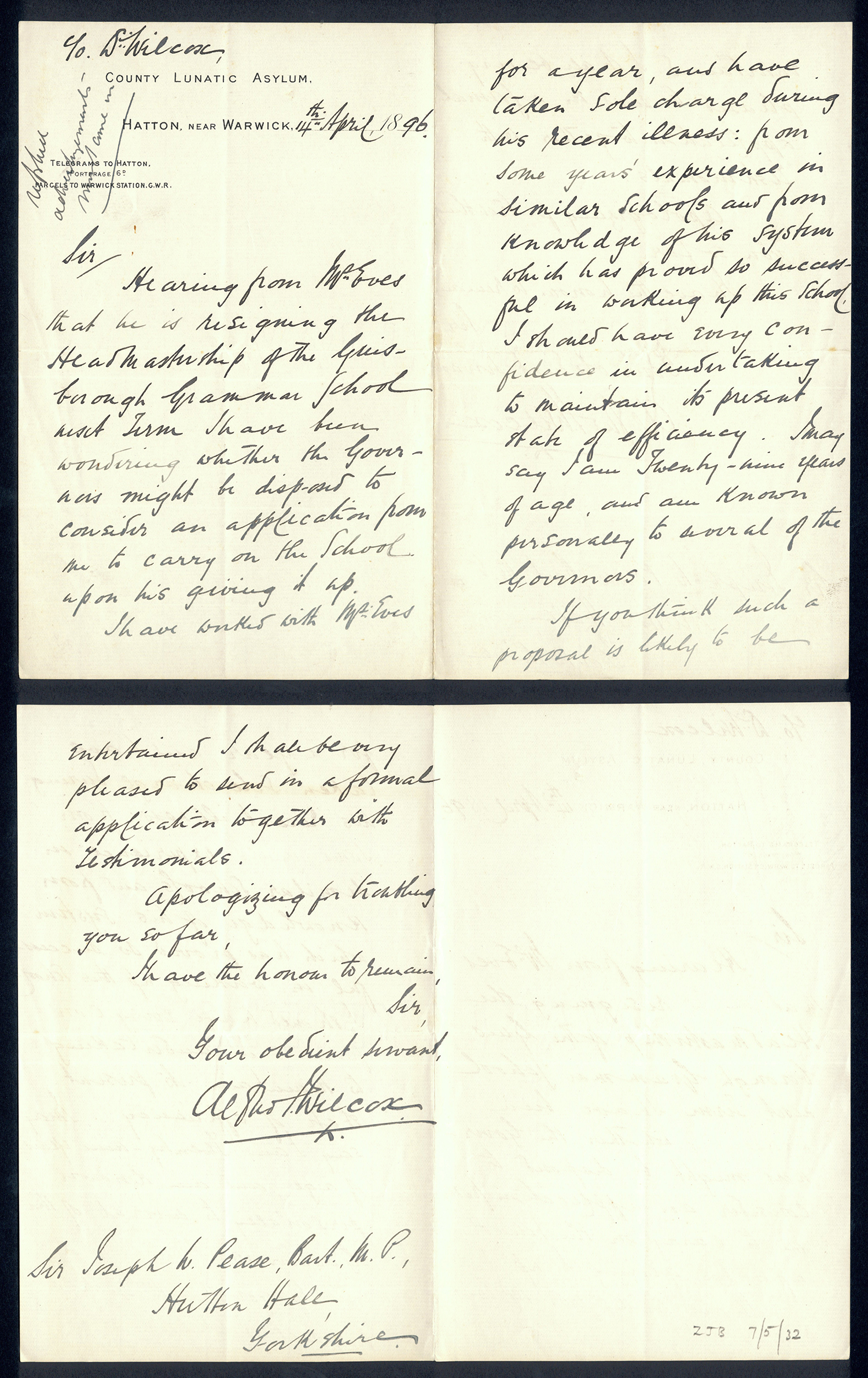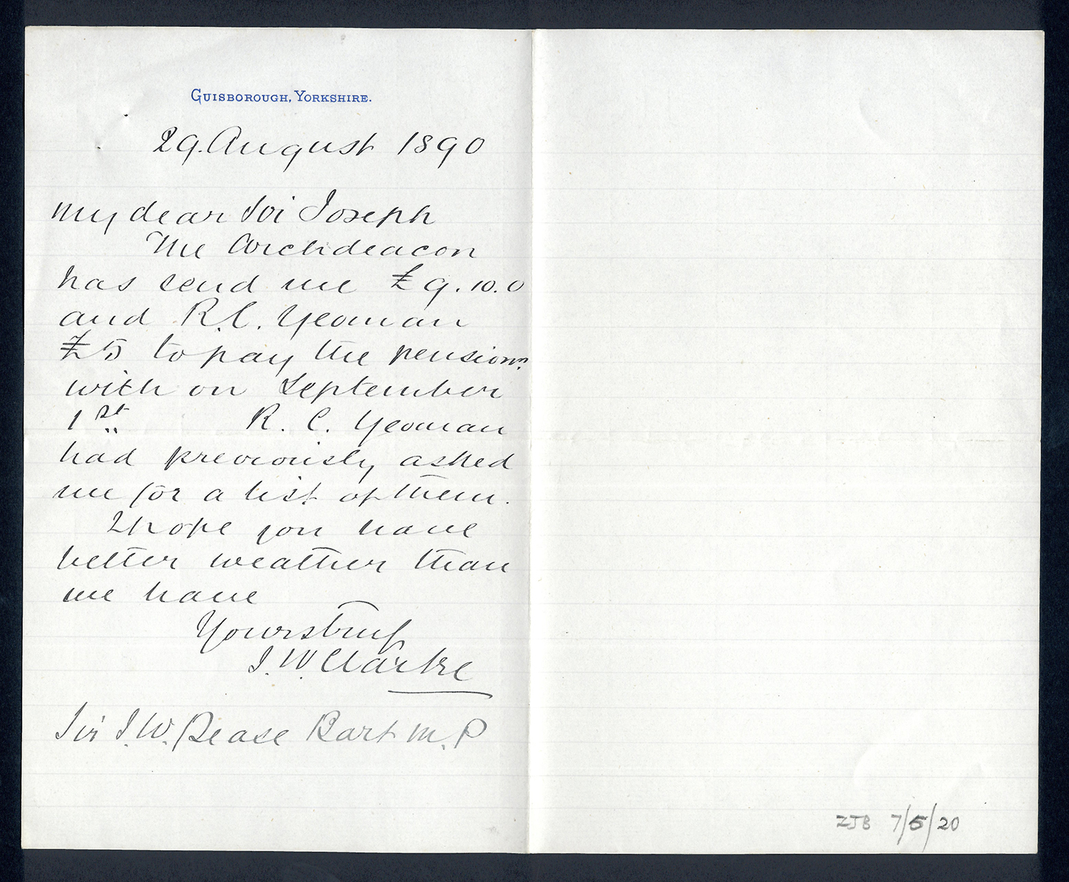 Sir Joseph Pease was the guiding force beind the reconstitution of Guisborough Hospital into Guisborough Grammar School in the 1880s. These letters date from 1886 to 1900, and form an interesting record of the very early years of Guisborough Grammar School.