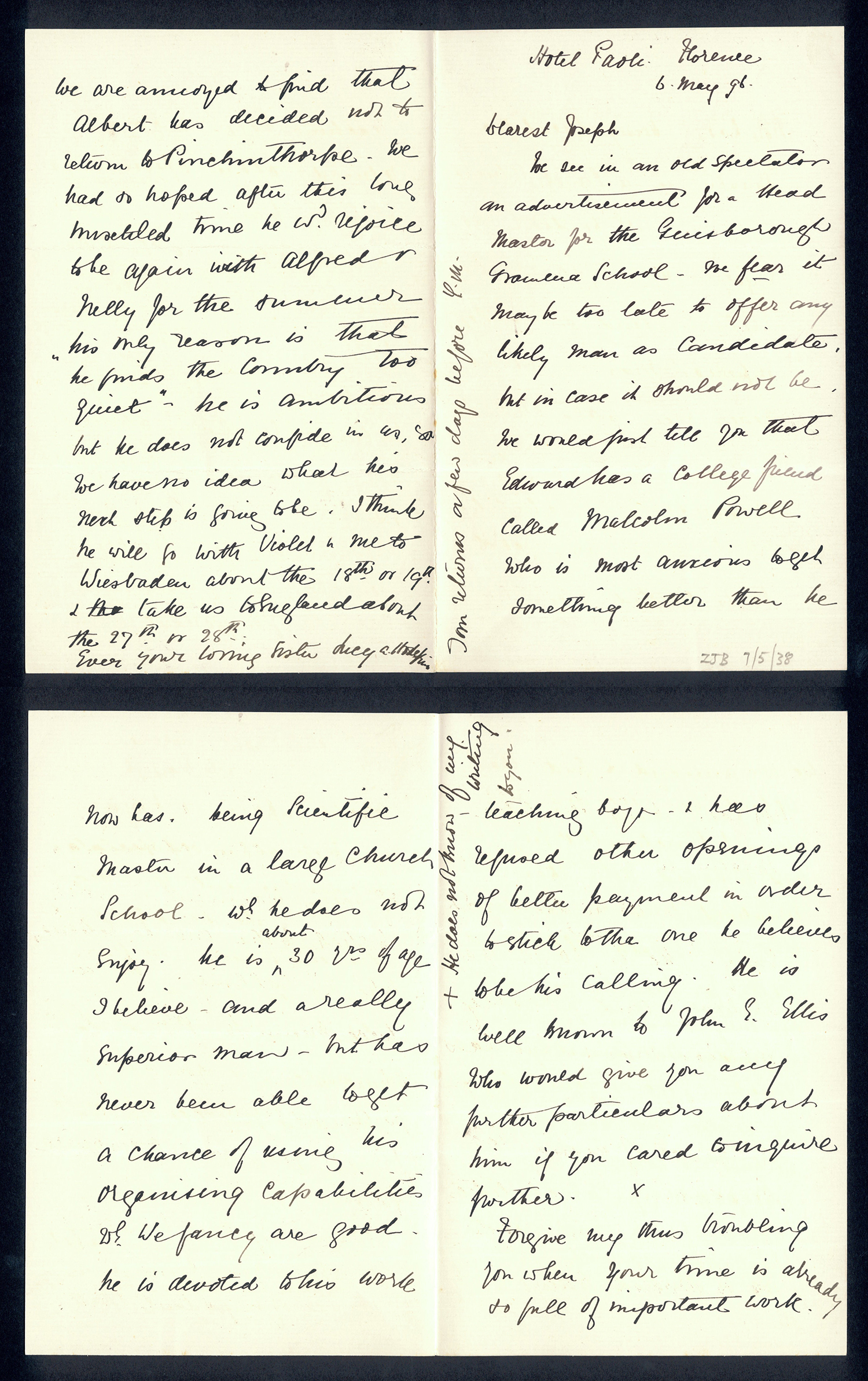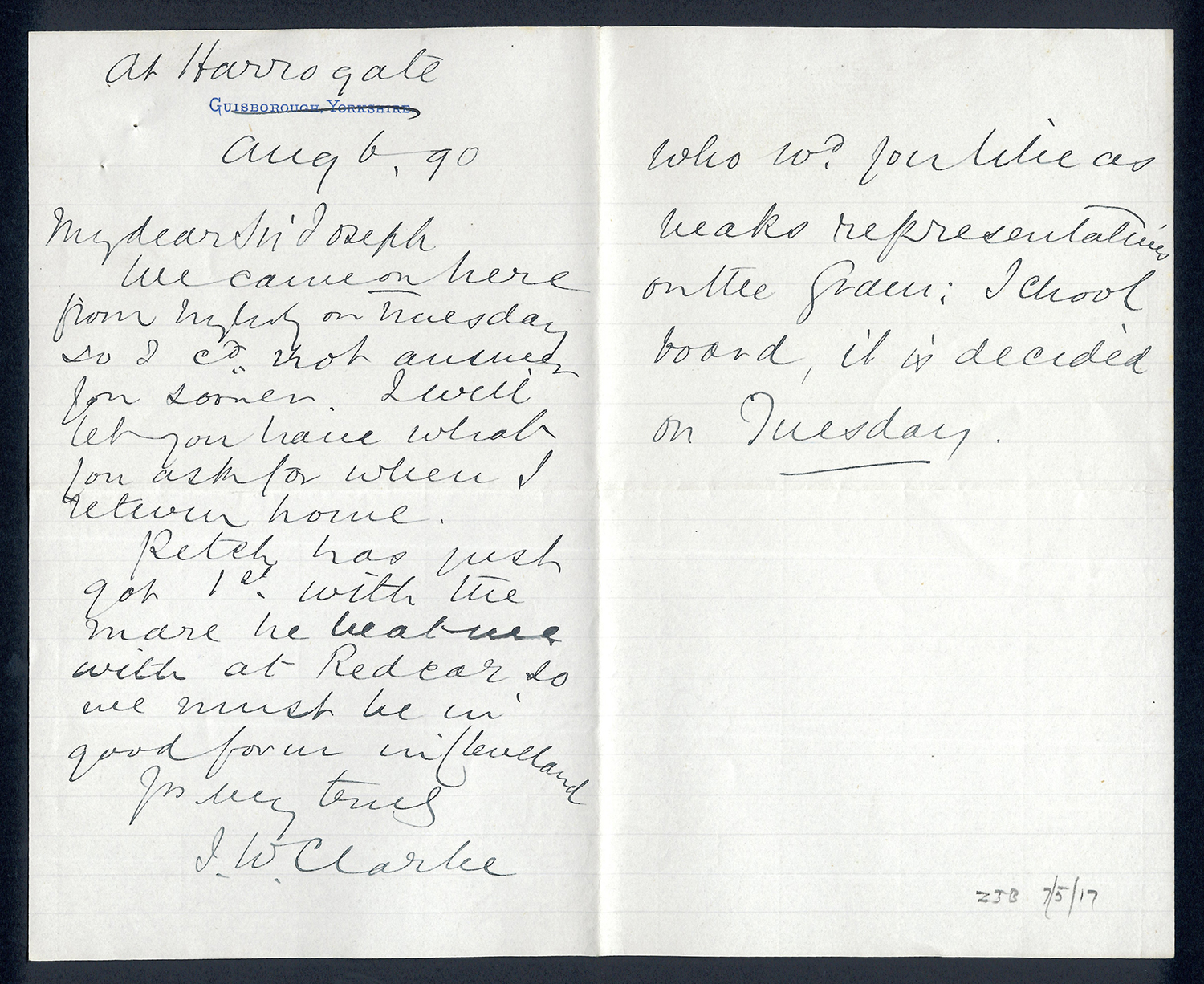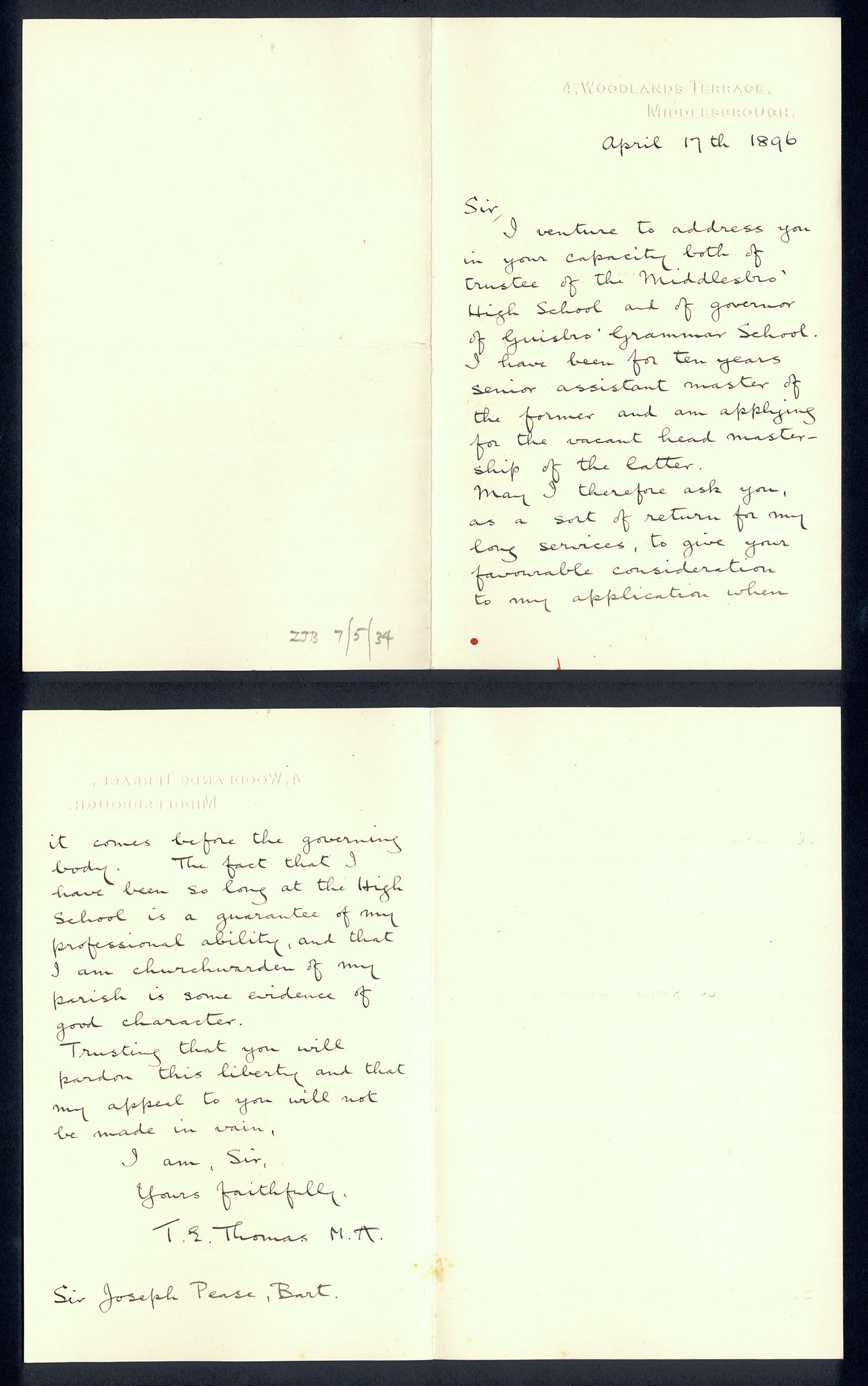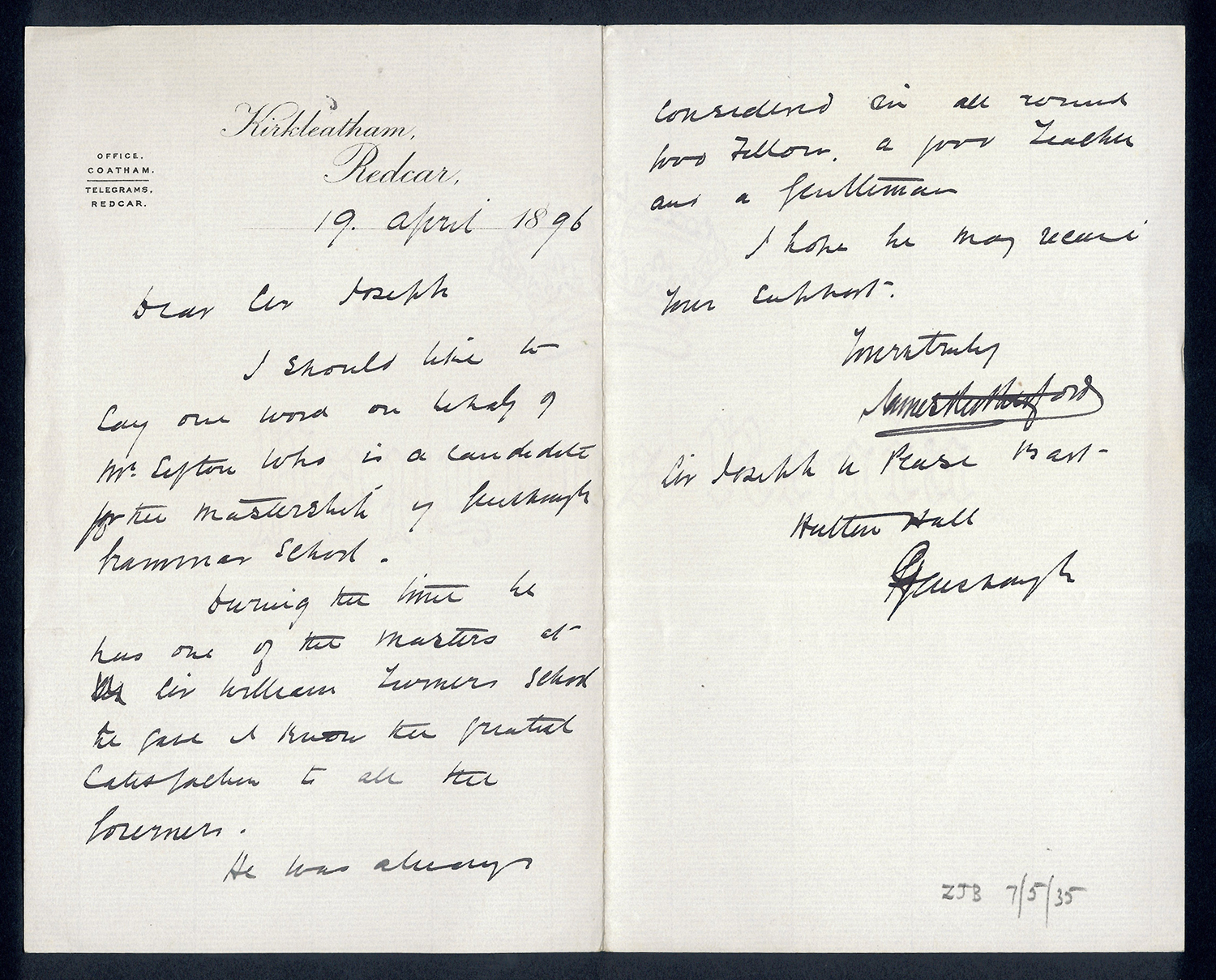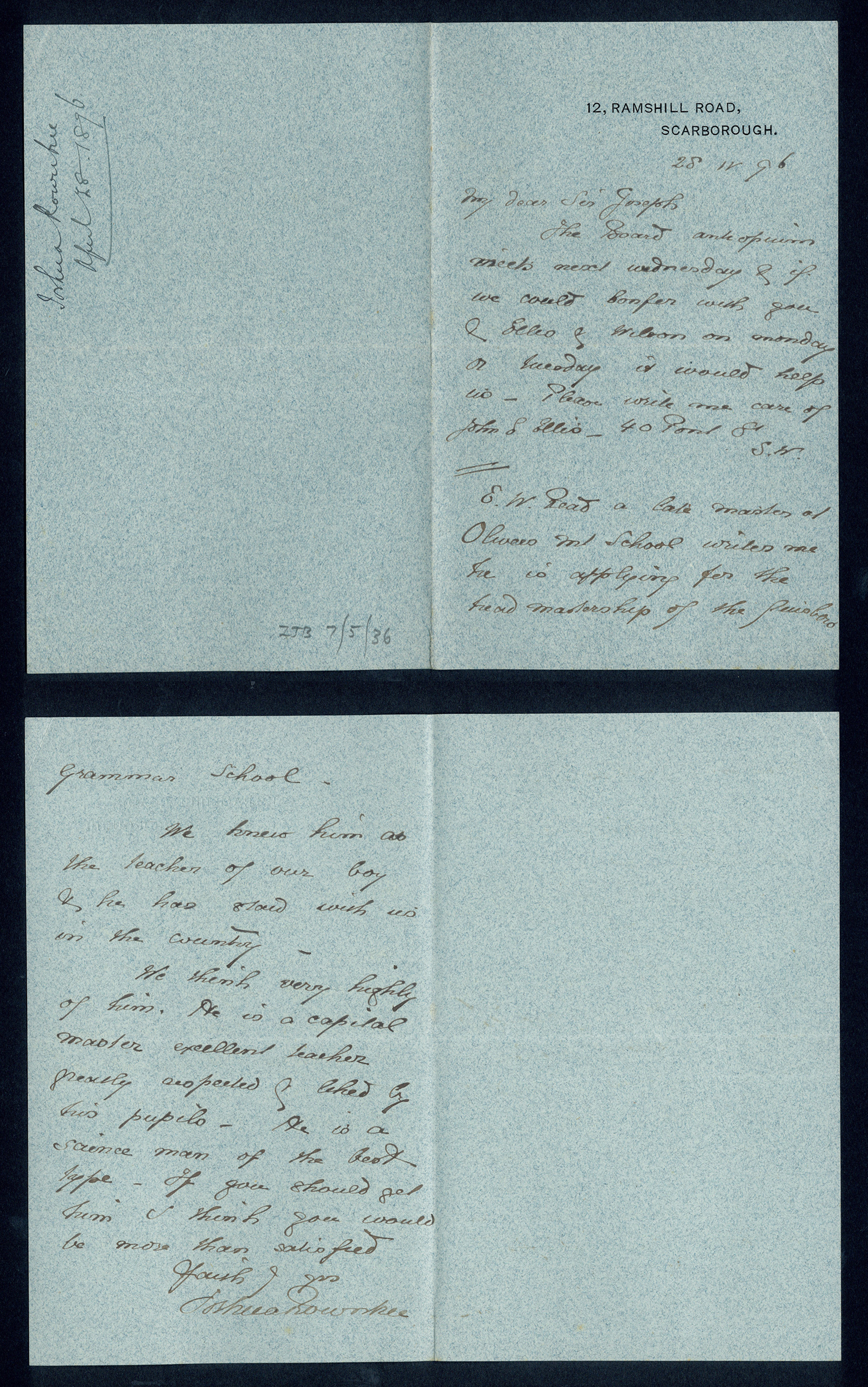 Sir Joseph Pease was the guiding force beind the reconstitution of Guisborough Hospital into Guisborough Grammar School in the 1880s. These letters date from 1886 to 1900, and form an interesting record of the very early years of Guisborough Grammar School.