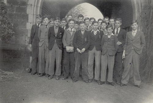 Z64, Boys in front of the Waterhouse Arch, Prize Day, undated